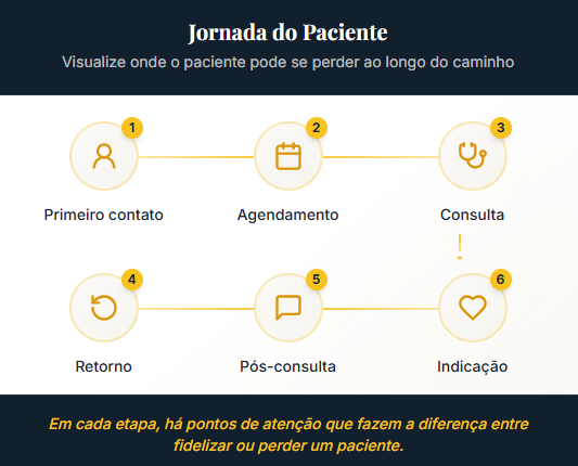 Sim! O checklist foi desenvolvido para cobrir a jornada completa do paciente, que é universal para clínicas e consultórios de qualquer especialidade. Desde a descoberta até a fidelização, os pontos de contato são os mesmos — o que muda são os detalhes específicos da sua prática.
