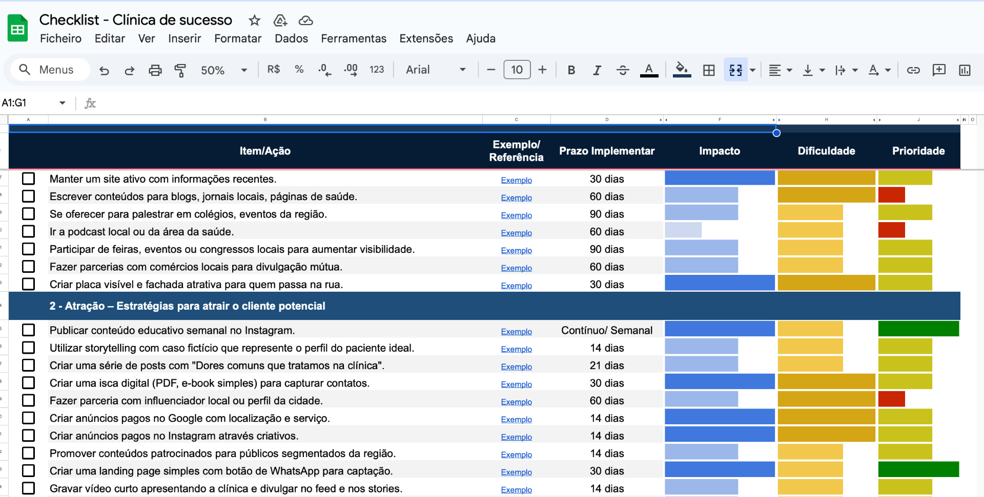 O checklist é entregue em formato de planilha (Google Sheets), que você pode acessar gratuitamente de qualquer dispositivo. Não precisa comprar nenhum software adicional.
